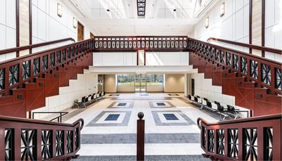 Phases I and II of the Moss Justice Center building located in York, SC, included new construction of approximately 100,000 square feet and renovation of approximately 80,000 square feet. Also included was a two-story, 322 car parking deck and construction of an underground tunnel. The design of the new structure is steel framing with brick veneer and a combination of storefront/curtain wall windows. The building is composed of general office and assembly spaces, core restroom facilities, various sized courtrooms and associated storage. General finishes include painted gypsum/cmu, epoxy terrazzo and carpet flooring and acoustical ceilings.